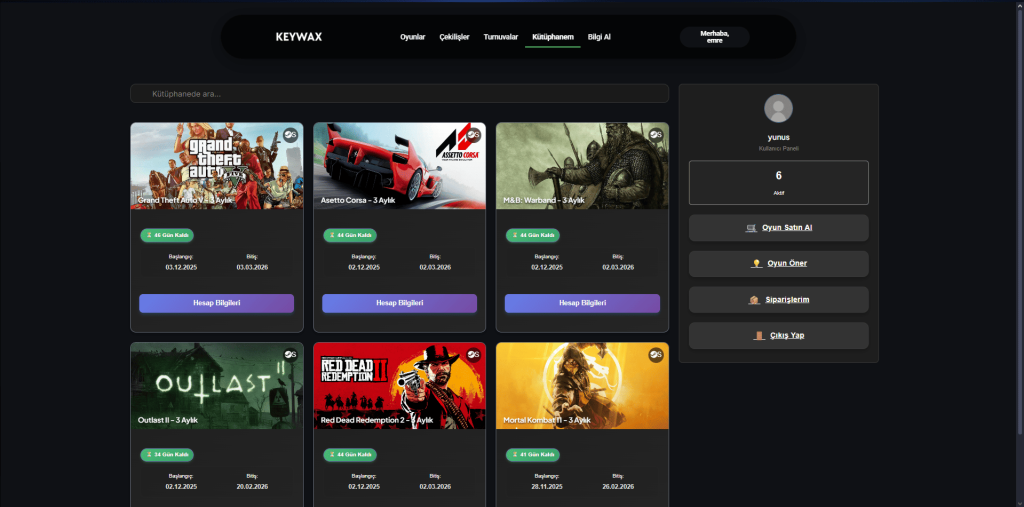 Oyun Hesabı, Satın alımdan hemen sonra kütüphanem sayfasına eklenir.
